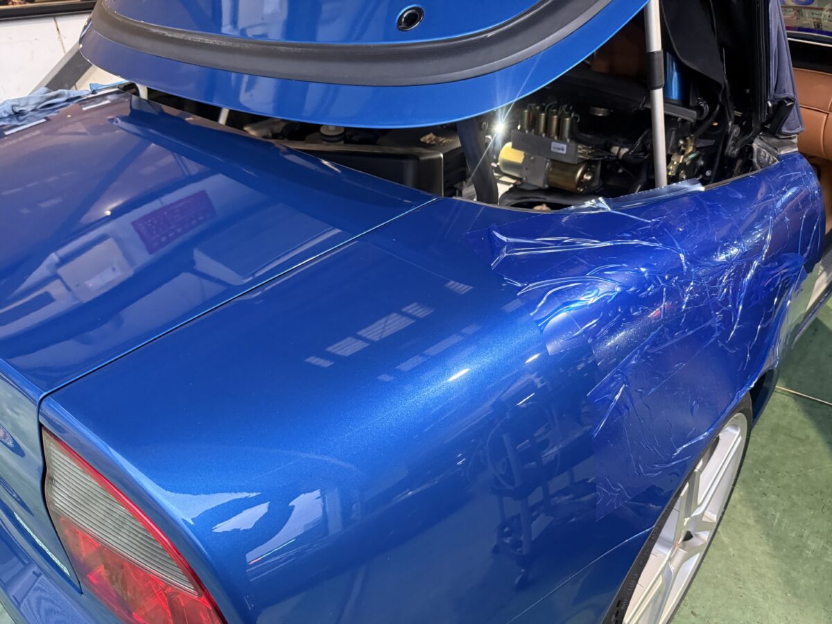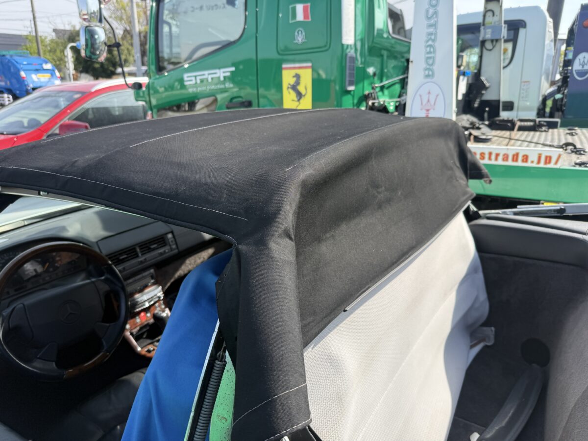 リアスクリーンの張り替え中のメルセデスベンツ❗️129‼️